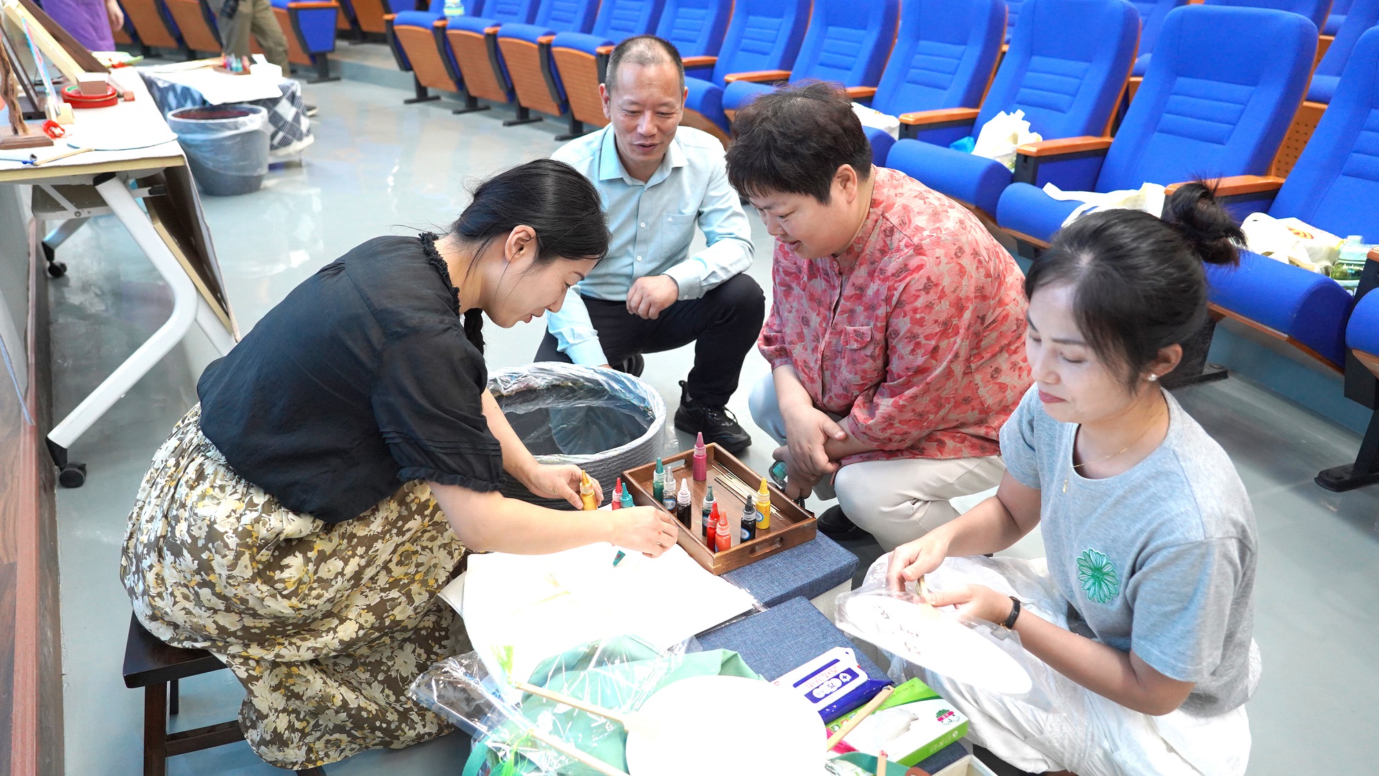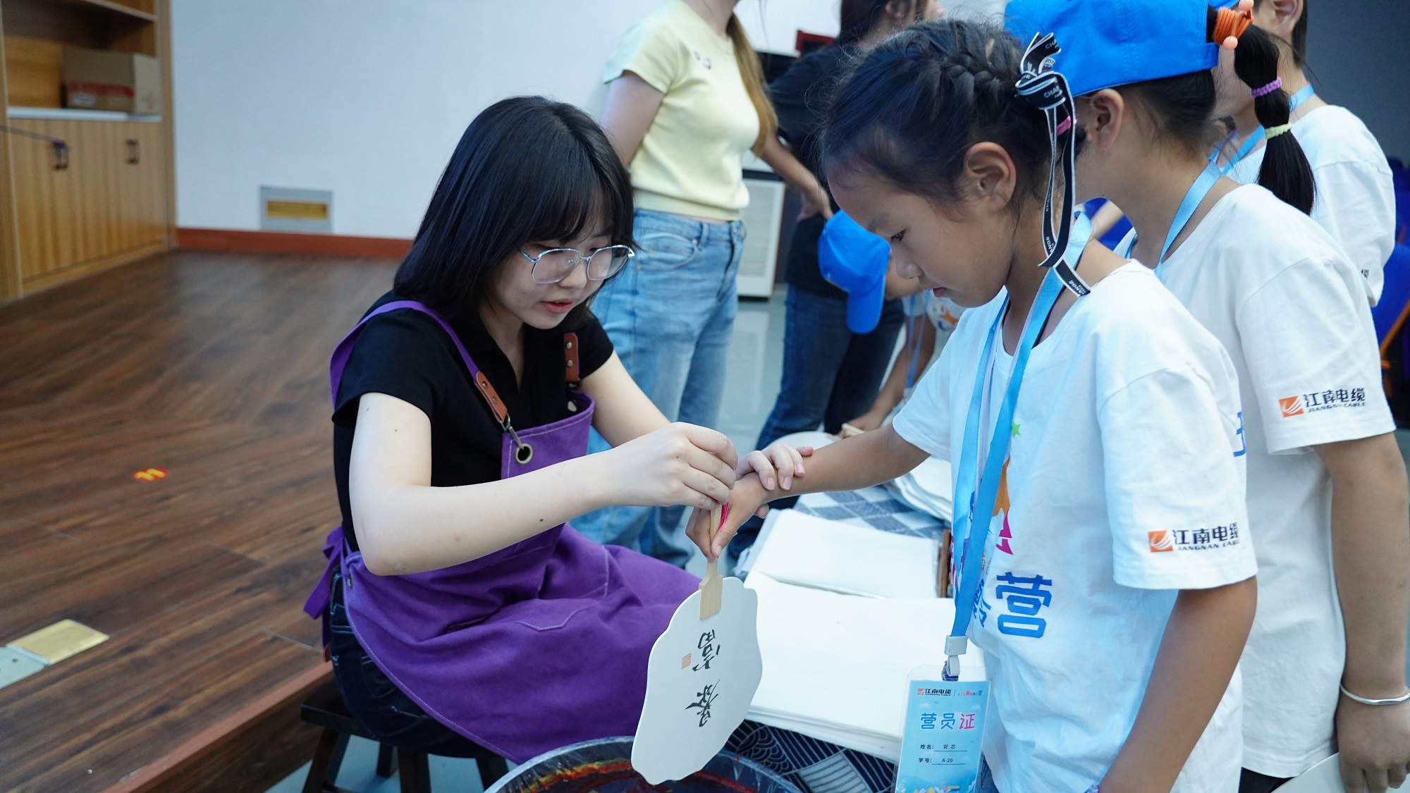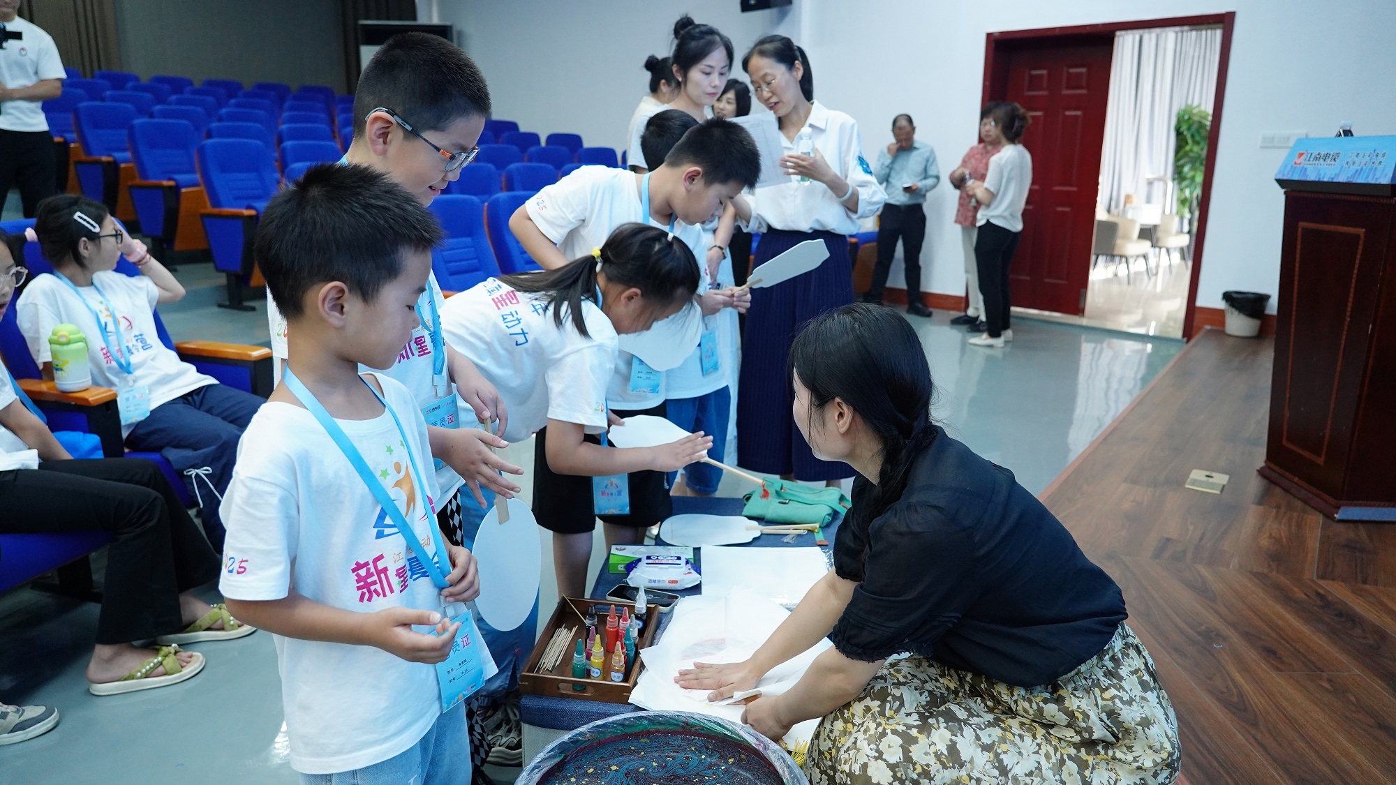 在老師的指導(dǎo)下,孩子們認(rèn)真學(xué)習(xí)漆扇制作技巧,從顏色選擇到滴入漆料再到素扇入水附著花紋,一把把絢麗、雅致的漆扇躍然而出。大家在實(shí)踐中感受非遺技藝的精妙,更在潛移默化中培養(yǎng)了對傳統(tǒng)文化的熱愛。