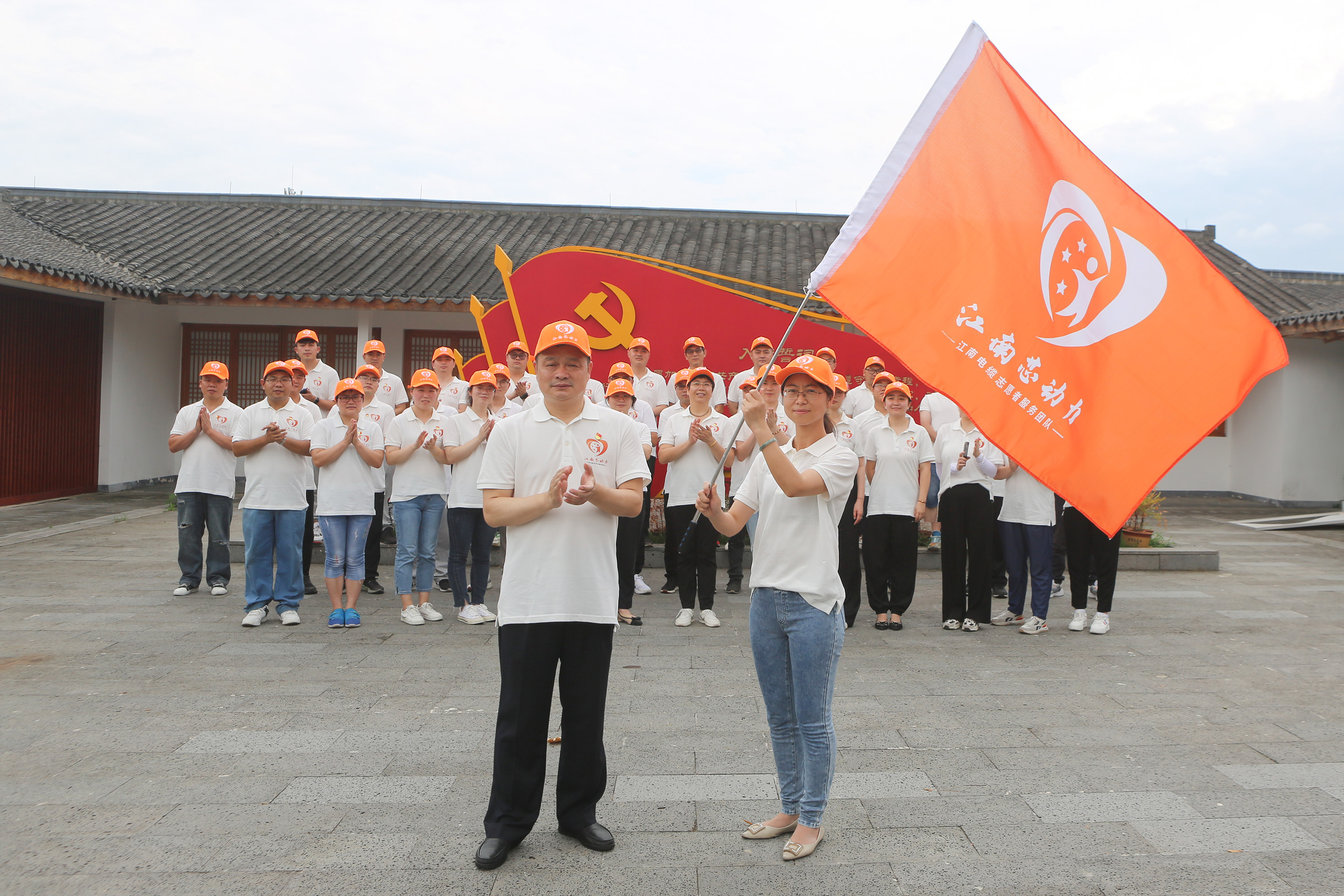 在白塔村黨建廣場(chǎng),公司黨委委員蔣永衛(wèi)同志向江南“芯”動(dòng)力黨員先鋒隊(duì)授旗。