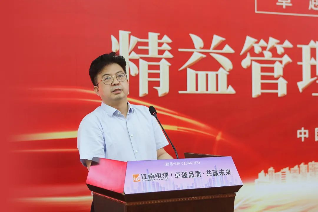 深圳市桑爾企業(yè)管理顧問股份有限公司總經(jīng)理黨新民致詞。他表示,江南電纜做為行業(yè)龍頭企業(yè),近40年來堅(jiān)守電線電纜實(shí)業(yè)發(fā)展不動搖,取得了令人矚目的成績。